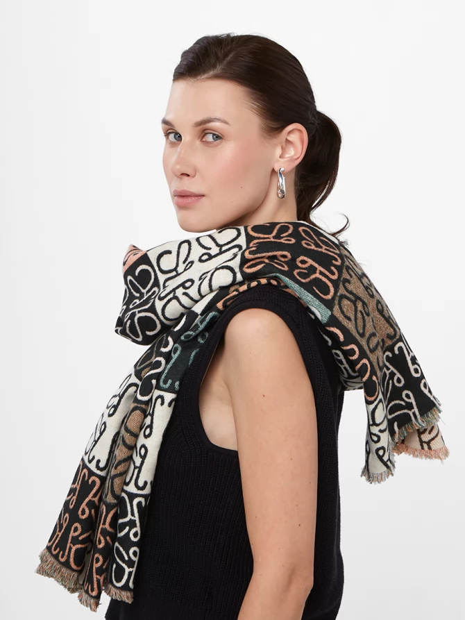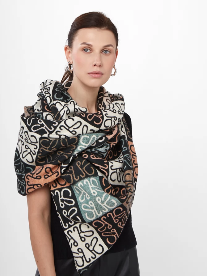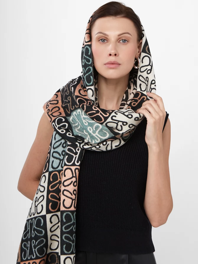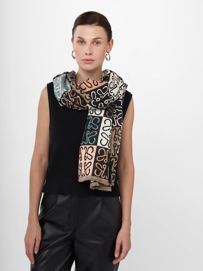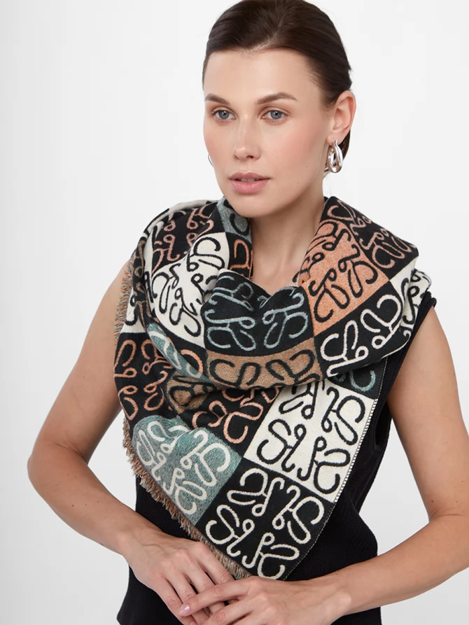 Наши дизайнеры вдохновились мировыми трендами, воплотив в этом палантине актуальный абстрактный узор, напоминающий монограммы, в гармоничной палитре: глубокий черный, чистый белый, нежный персиковый и освежающий мятный. Его двусторонняя фактура позволяет экспериментировать с образами, меняя акценты одним движением. Мягкий и невероятно приятный к телу, этот палантин обеспечит вам тепло и комфорт даже в самые прохладные дни, становясь идеальным спутником как для осенних прогулок, так и для вечерних выходов.