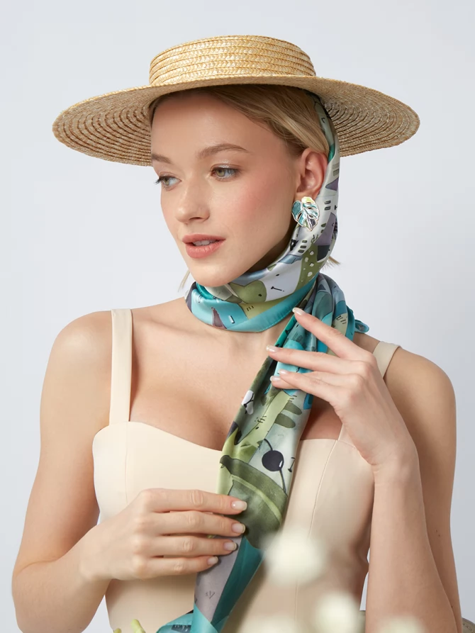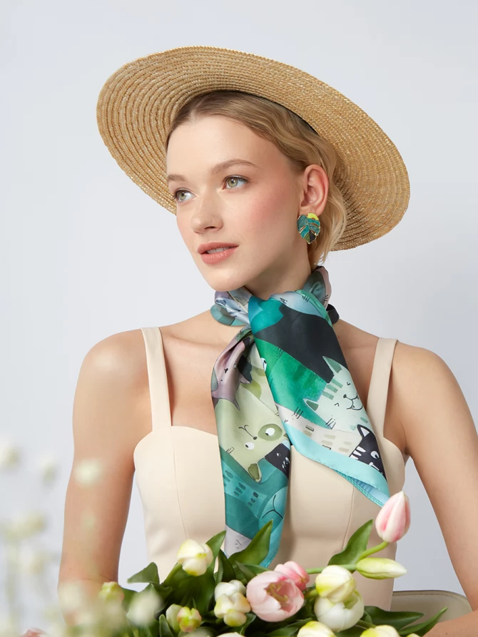 Этот аксессуар не только красив, но и удивительно универсален. Вы можете носить его традиционно на шее, как элегантный акцент, или использовать в качестве стильной повязки для волос. Завяжите его на ручку сумки, чтобы придать повседневному образу шик и индивидуальность. Он прекрасно дополнит как деловой костюм, так и легкое летнее платье, подчеркивая вашу женственность и чувство стиля.