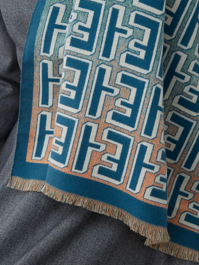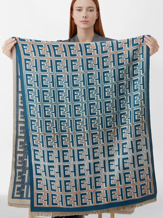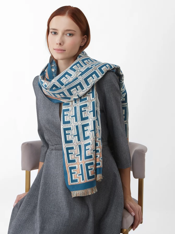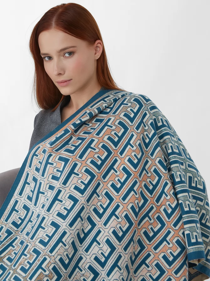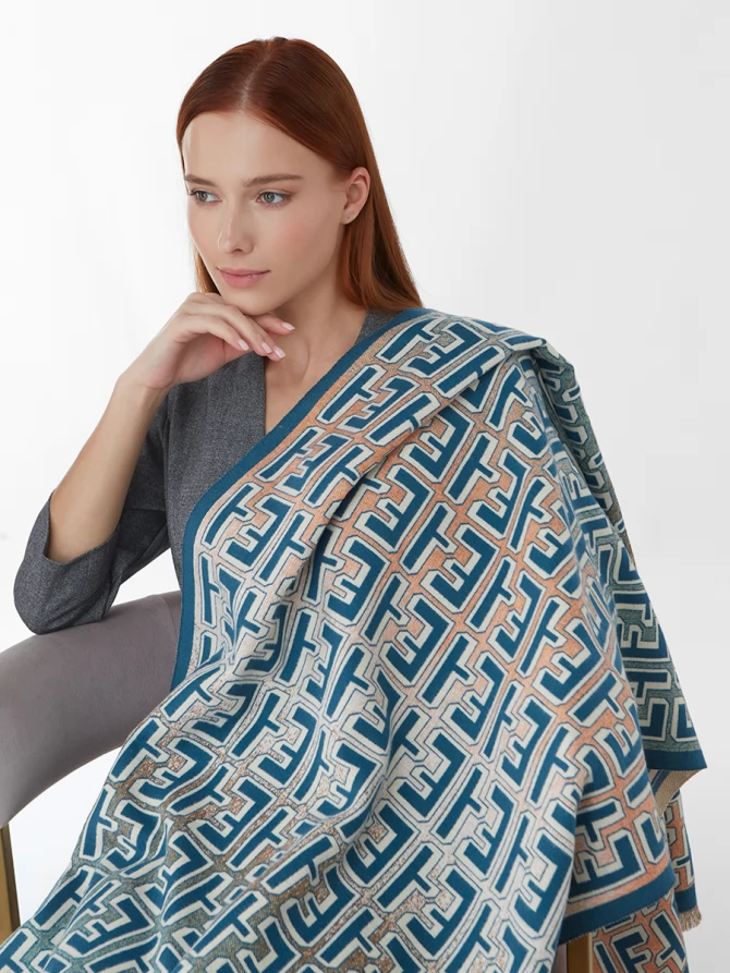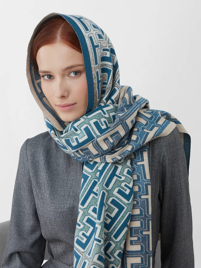 Наш большой, мягкий и невероятно теплый палантин станет вашим незаменимым спутником в прохладную погоду. Его уникальный двусторонний геометрический принт, выполненный в актуальных оттенках морской волны, бежевого и песочного, позволяет легко менять образ. Одна сторона палантина доминирует бирюзовым, а вторая — мягким песочным, предлагая бесконечные возможности для стилизации.