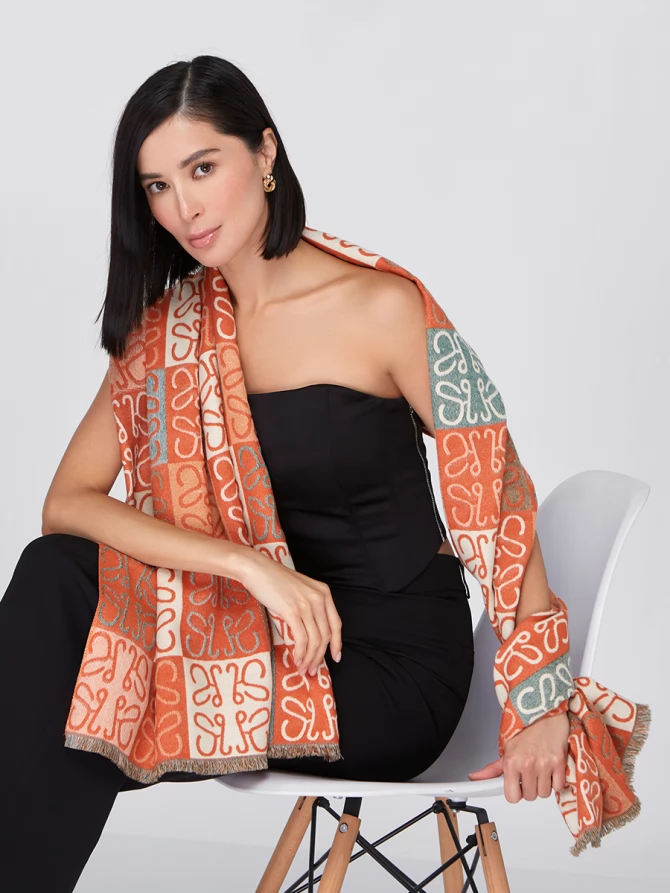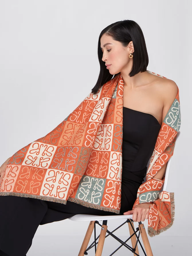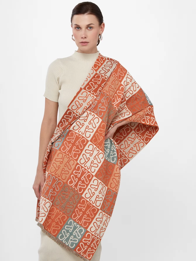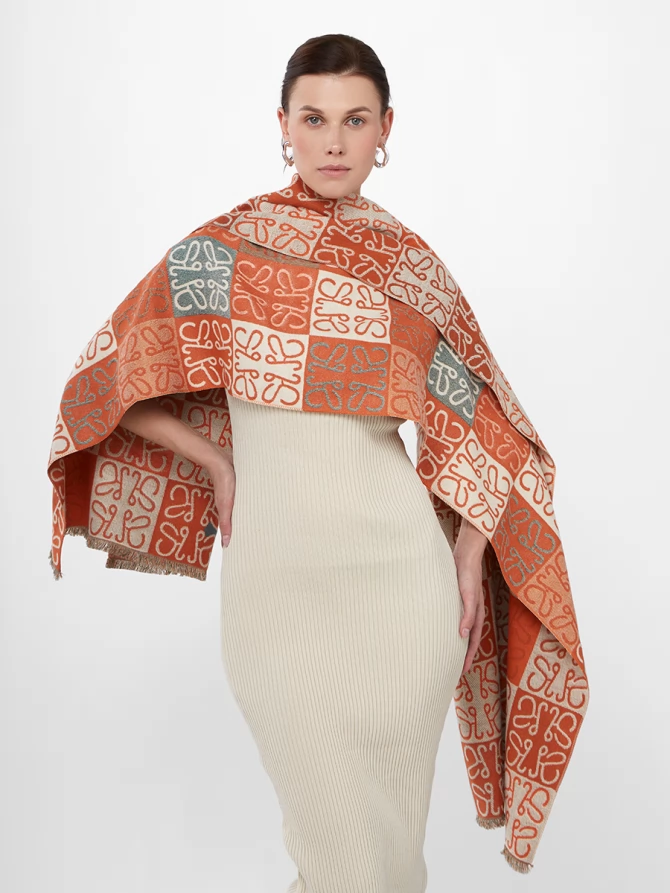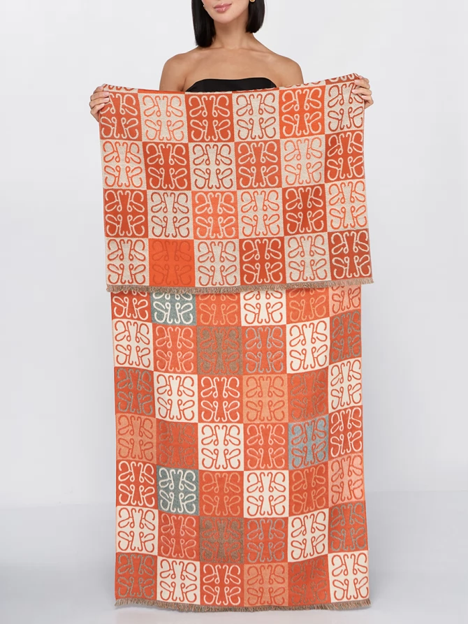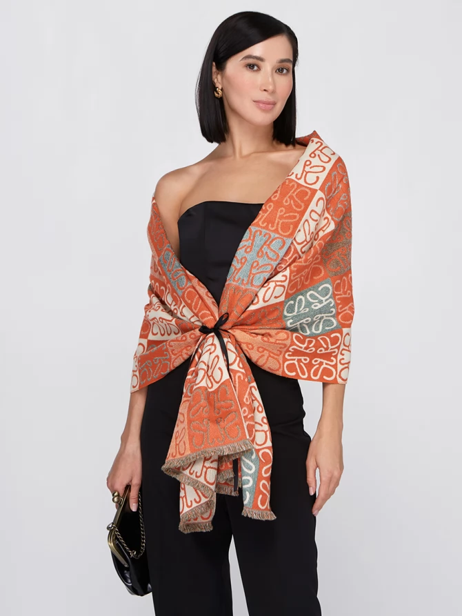 Представьте: большой, невероятно мягкий и приятный на ощупь. Этот двусторонний палантин позволяет легко менять акценты в наряде. Одна сторона радует ярким сочетанием терракотового и кремового, другая – приглушенными бирюзовыми оттенками, создавая уникальный геометрический узор, который моментально притягивает взгляды.