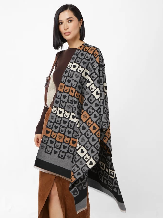 Встречайте идеальный аксессуар, который подарит вам не только тепло, но и невероятное настроение – наш двусторонний палантин с очаровательным принтом!