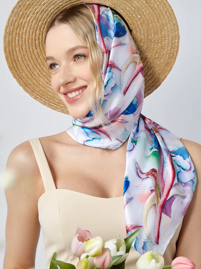 Уход: Только ручная стирка. Это поможет сохранить первозданную яркость и нежность вашего платка на долгие годы.