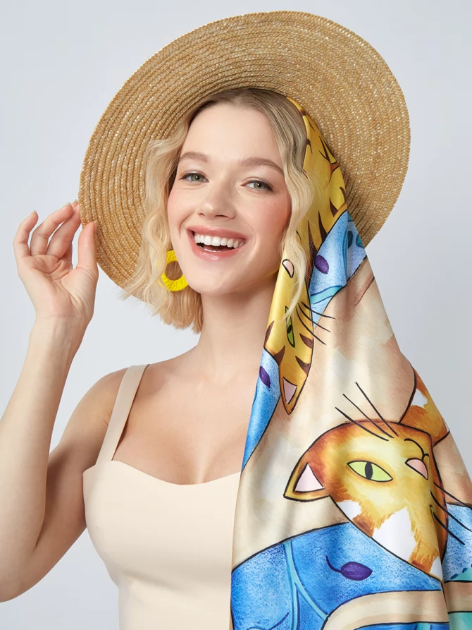 Ощутите вдохновение и уверенность, выбирая аксессуары, которые говорят о вашем безупречном вкусе! Этот платок — не просто деталь гардероба, это ваша история стиля.