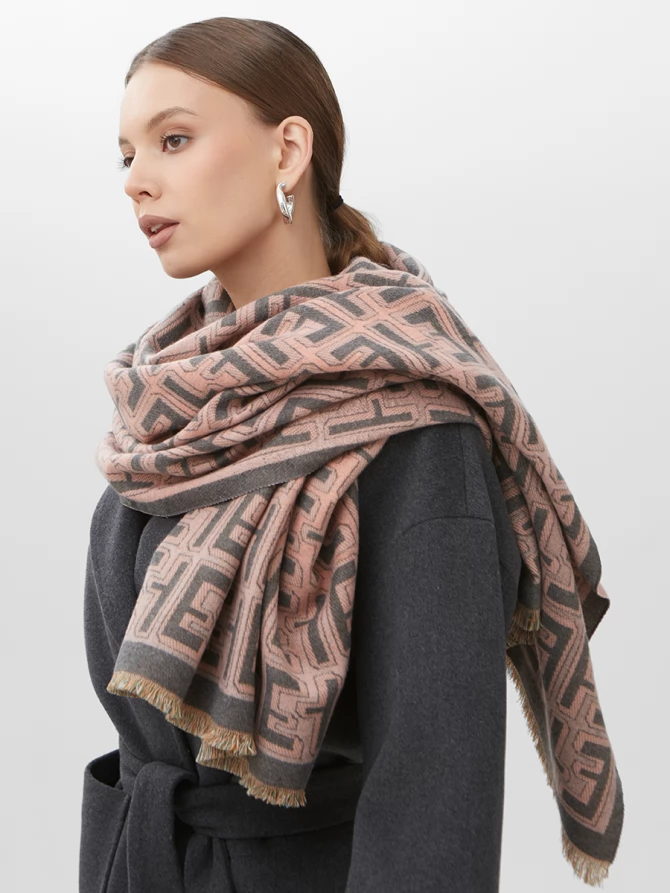 Наш палантин покоряет с первого взгляда своим трендовым геометрическим узором, который гармонично сочетает нежный пудровый и глубокий серый оттенки. А благодаря двустороннему дизайну, вы можете менять настроение образа одним движением, выбирая ту сторону, что лучше соответствует вашему стилю или настроению. Это настоящий must-have для тех, кто ценит универсальность и модные акценты.