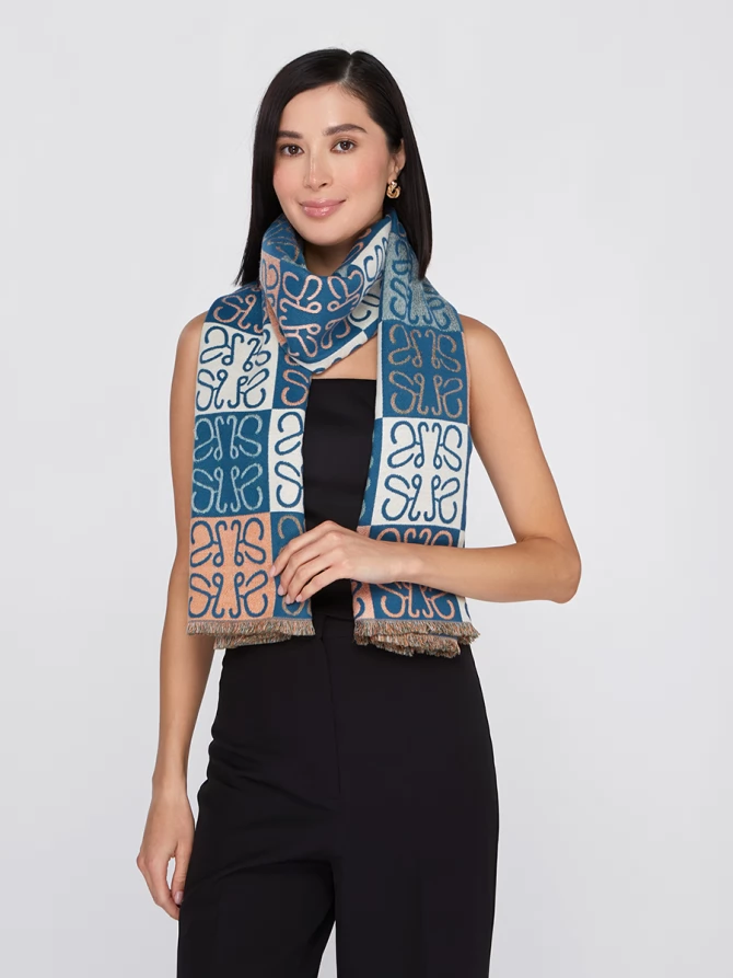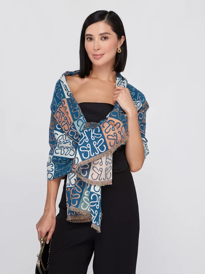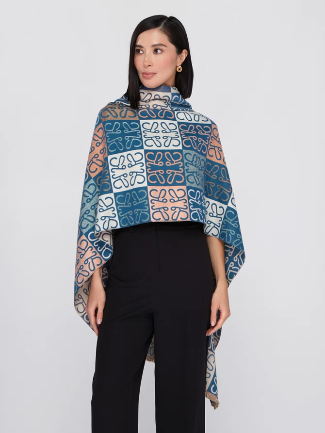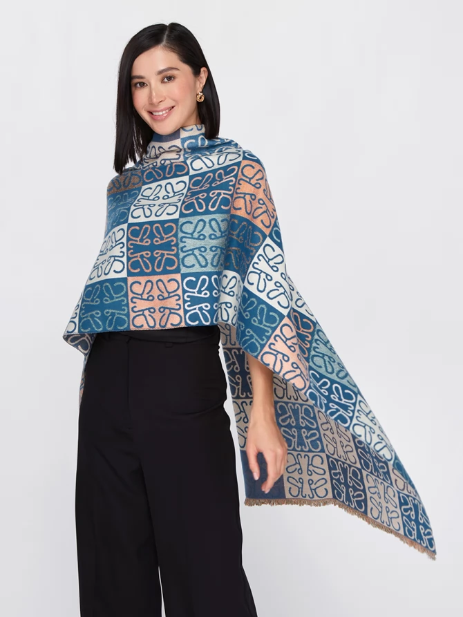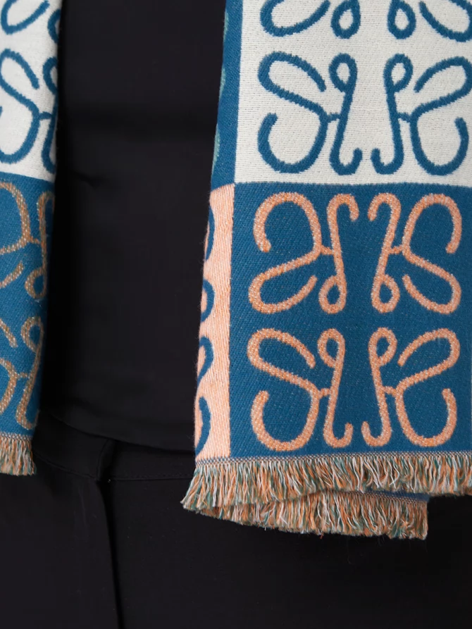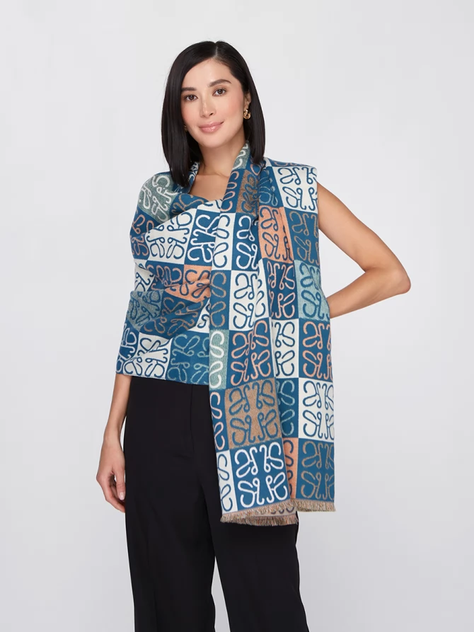 Представьте: большой, мягкий и невероятно теплый, он станет вашим незаменимым спутником в прохладную погоду. Его уникальный абстрактный узор в модных оттенках синего, бежевого и молочного выполнен в духе последних мировых трендов, добавляя изысканность любому образу. Двусторонняя конструкция позволяет каждый раз создавать новый акцент, играя с цветами и настроением.