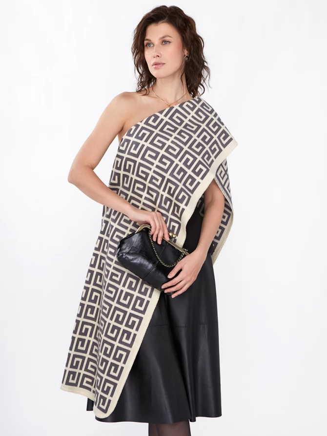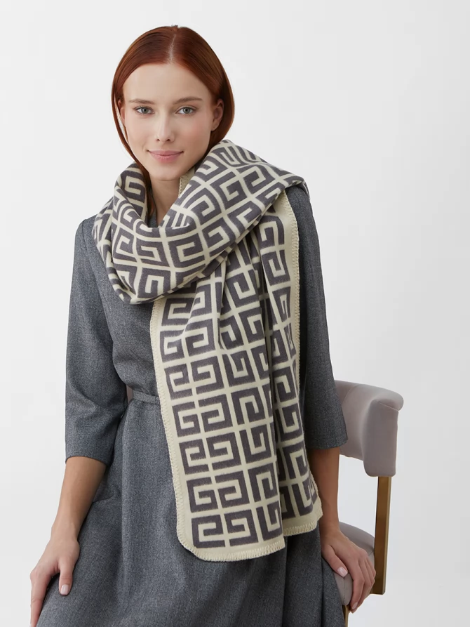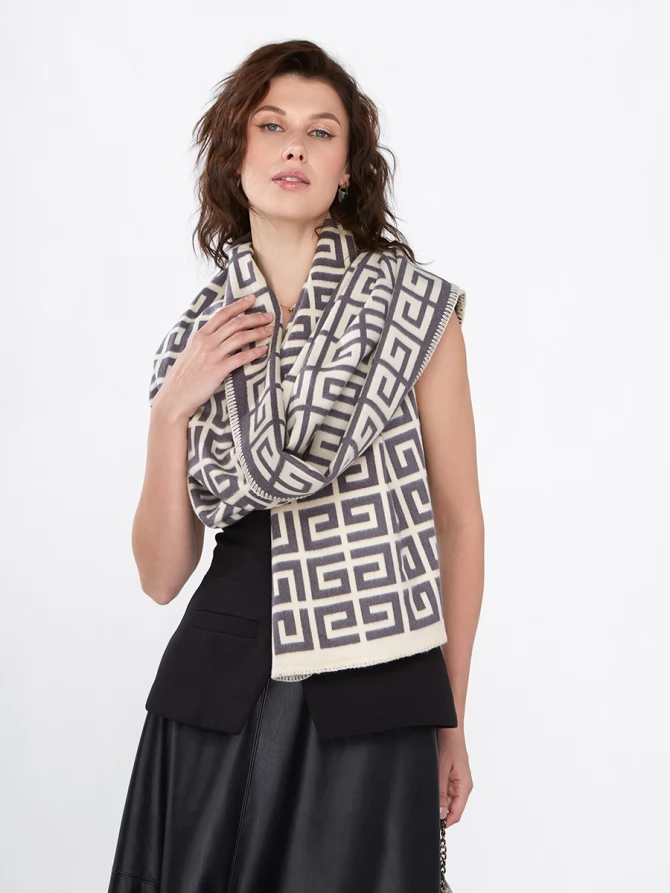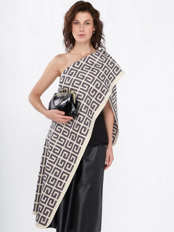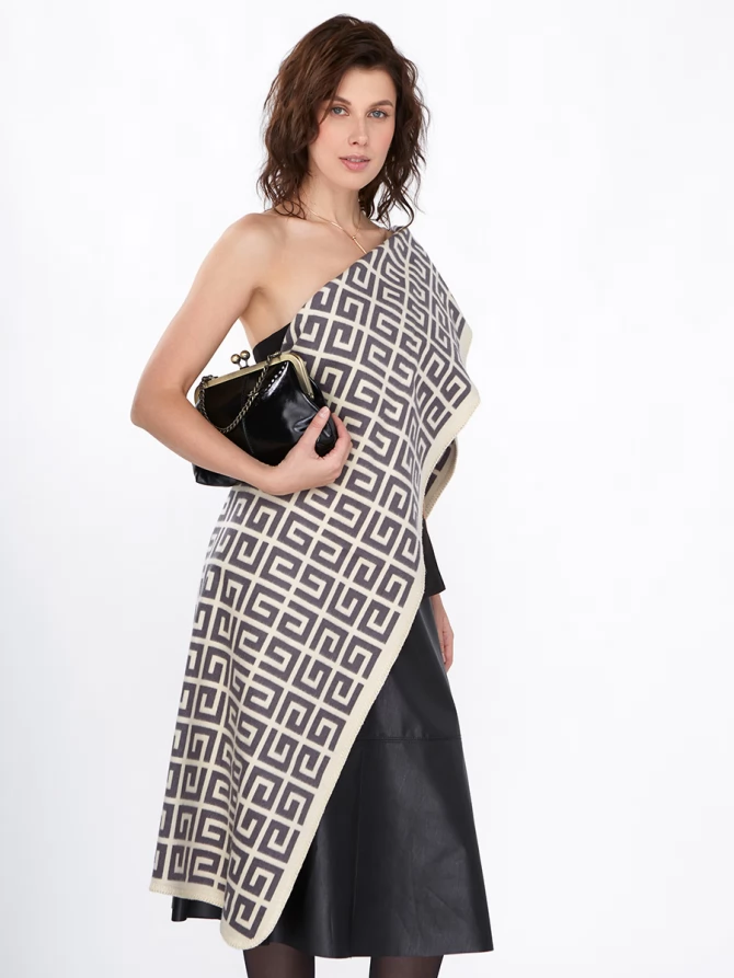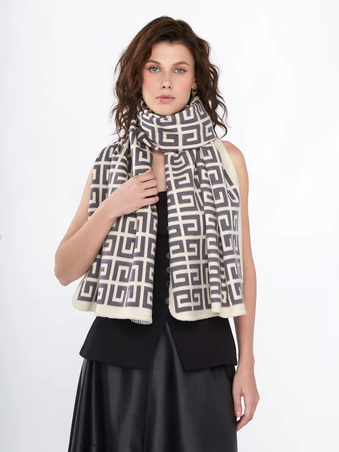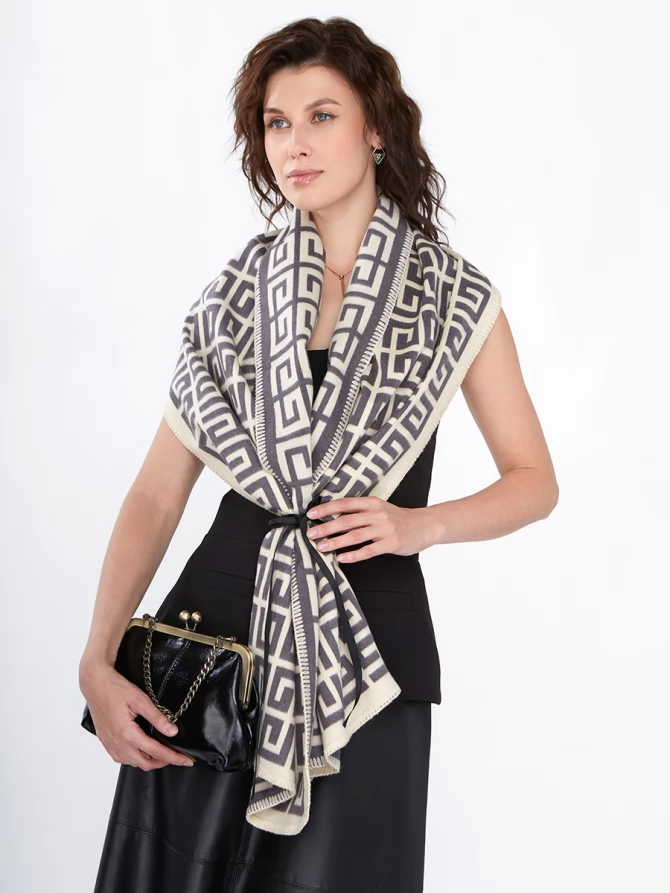 Наш палантин — это не просто деталь образа, это произведение искусства, созданное нашими дизайнерами. Он выполнен из мягкого, теплого материала и украшен актуальным двусторонним геометрическим принтом, который приковывает взгляды и подчеркивает вашу индивидуальность. Благодаря своей двусторонней природе, вы получаете сразу два варианта стилизации, легко меняя акценты.