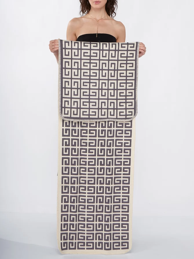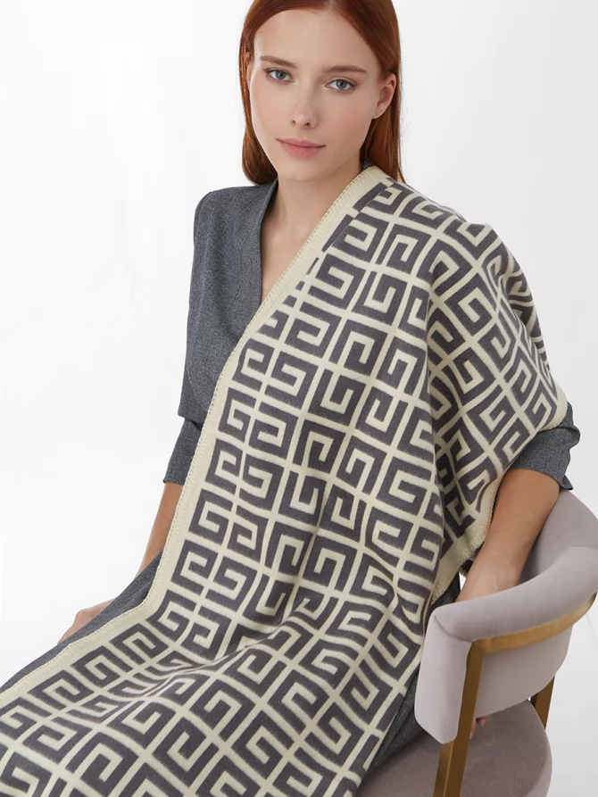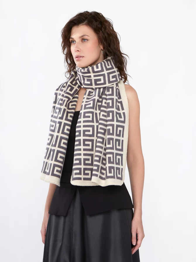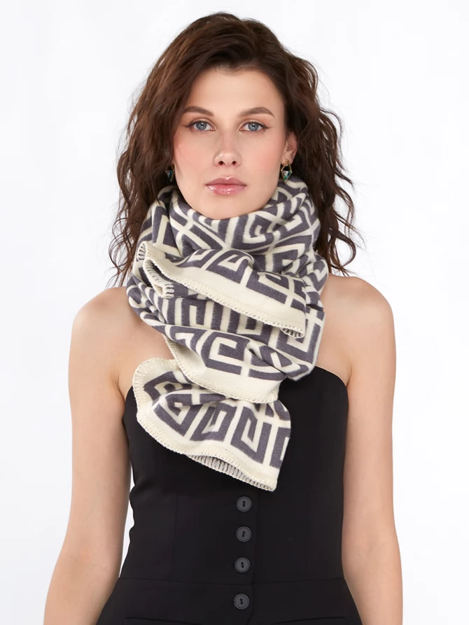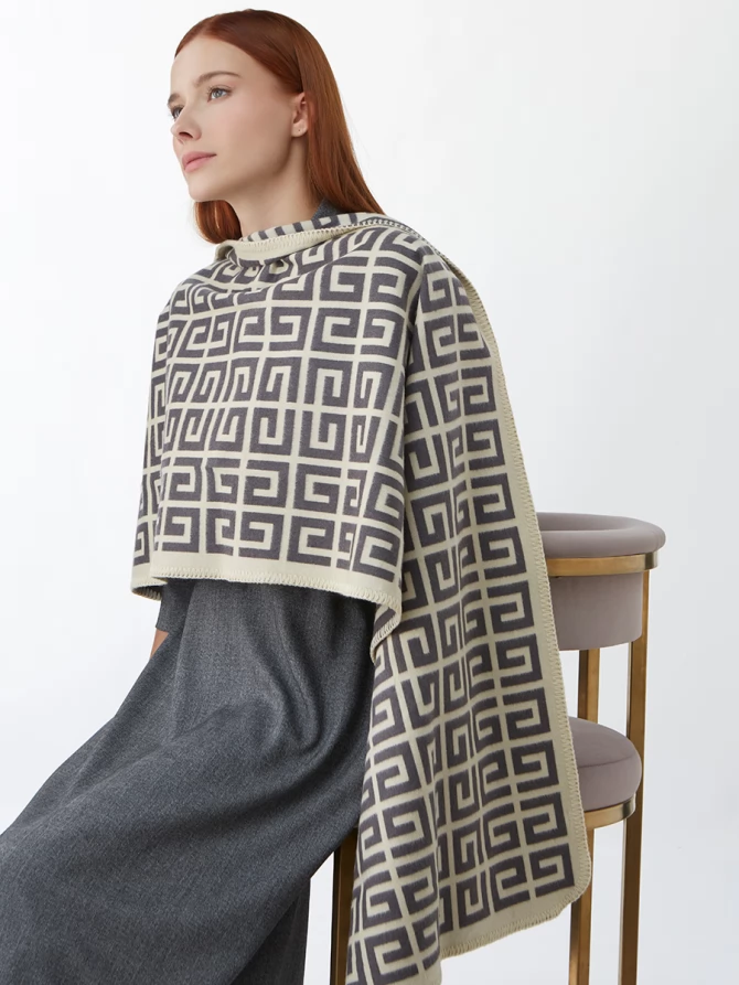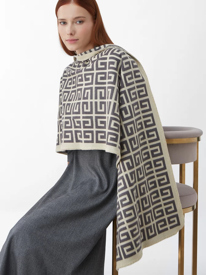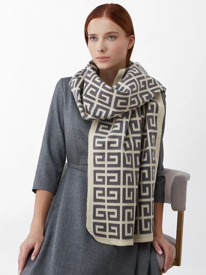 Наш палантин — это не просто деталь образа, это произведение искусства, созданное нашими дизайнерами. Он выполнен из мягкого, теплого материала и украшен актуальным двусторонним геометрическим принтом, который приковывает взгляды и подчеркивает вашу индивидуальность. Благодаря своей двусторонней природе, вы получаете сразу два варианта стилизации, легко меняя акценты.