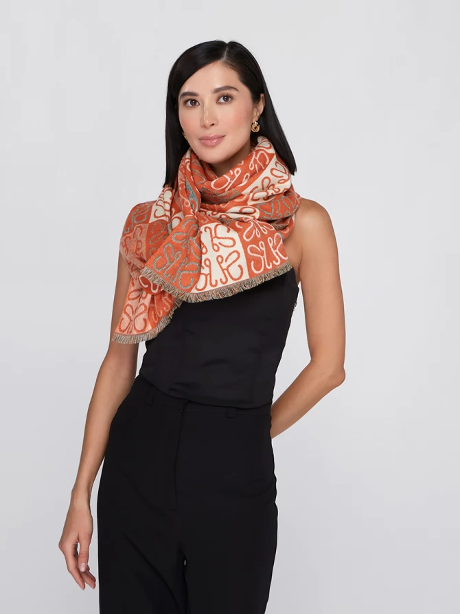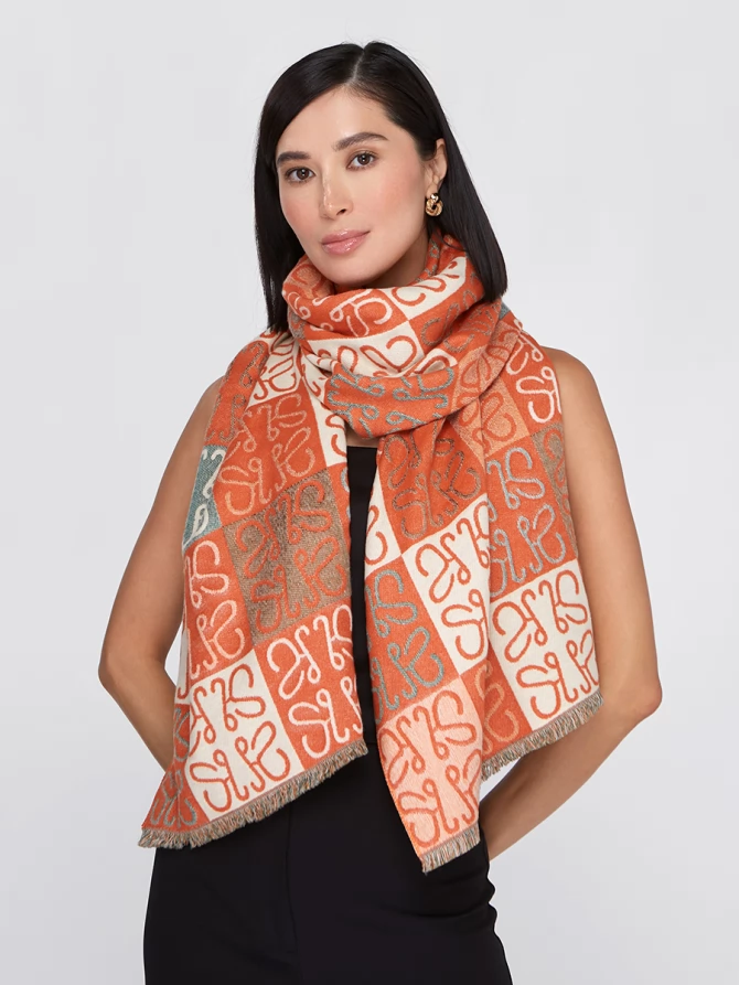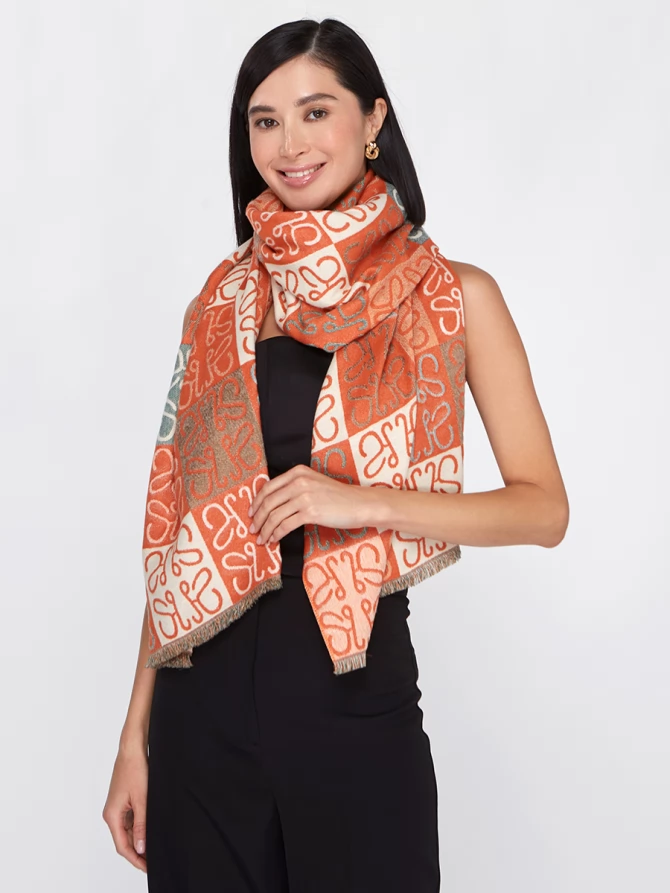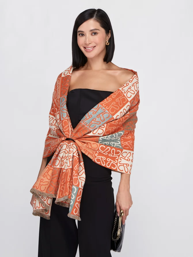 Представьте: большой, невероятно мягкий и приятный на ощупь. Этот двусторонний палантин позволяет легко менять акценты в наряде. Одна сторона радует ярким сочетанием терракотового и кремового, другая – приглушенными бирюзовыми оттенками, создавая уникальный геометрический узор, который моментально притягивает взгляды.