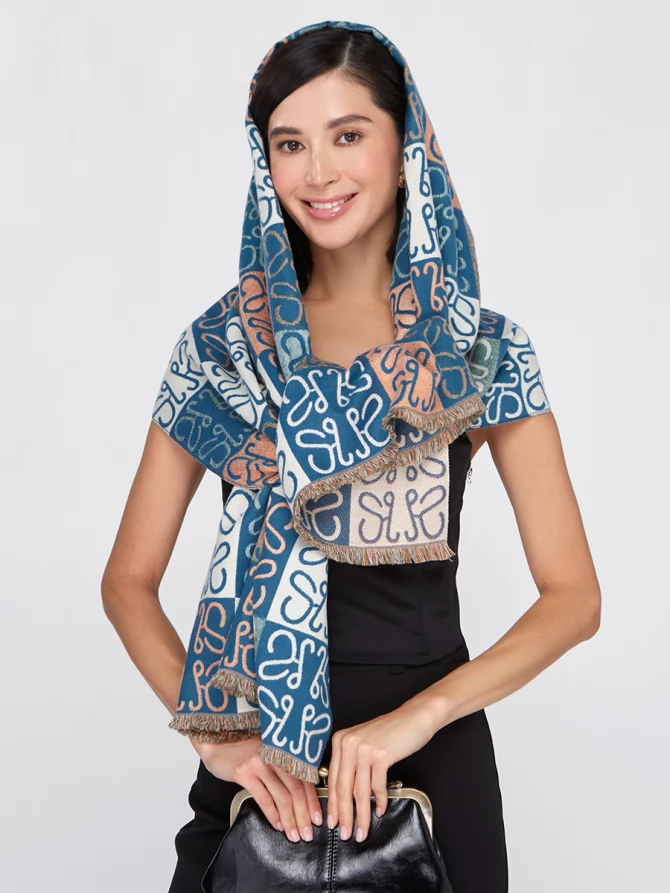 Представьте: большой, мягкий и невероятно теплый, он станет вашим незаменимым спутником в прохладную погоду. Его уникальный абстрактный узор в модных оттенках синего, бежевого и молочного выполнен в духе последних мировых трендов, добавляя изысканность любому образу. Двусторонняя конструкция позволяет каждый раз создавать новый акцент, играя с цветами и настроением.