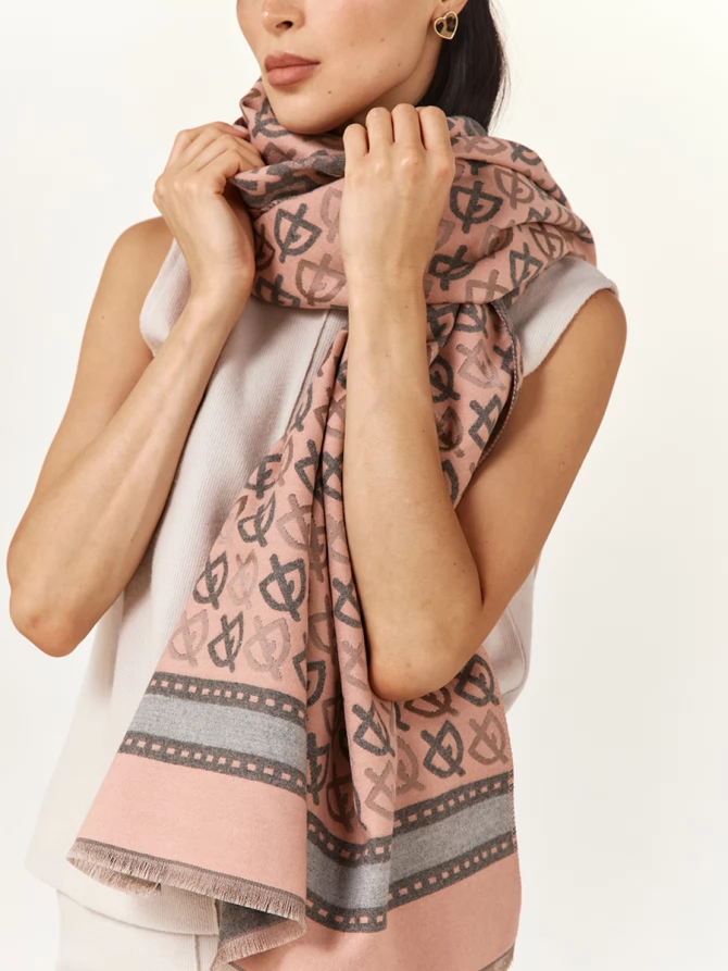 Наши дизайнеры тщательно продумали каждую деталь: этот двусторонний палантин украшен уникальным абстрактным принтом в нежных пудровых и глубоких серо-коричневых тонах. Идеальное сочетание для создания как повседневных, так и более торжественных ансамблей. Высочайшее качество лекал обеспечивает его идеальную драпировку, позволяя носить палантин множеством способов – от классического накидывания на плечи до элегантного завязывания вокруг шеи.