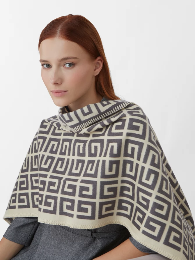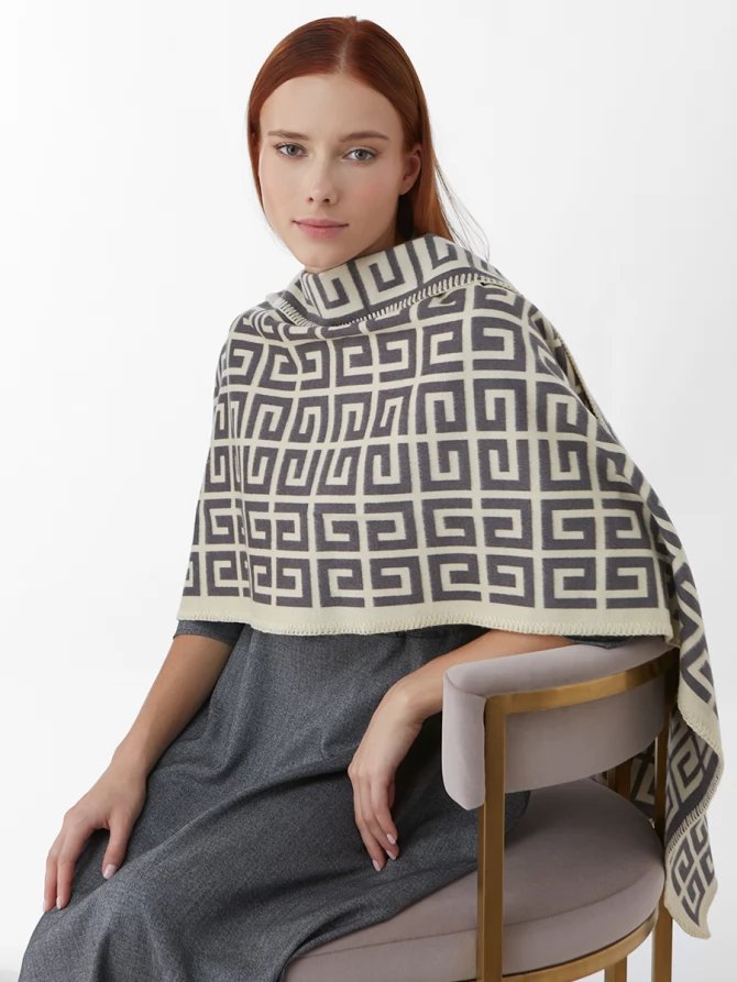 Наш палантин — это не просто деталь образа, это произведение искусства, созданное нашими дизайнерами. Он выполнен из мягкого, теплого материала и украшен актуальным двусторонним геометрическим принтом, который приковывает взгляды и подчеркивает вашу индивидуальность. Благодаря своей двусторонней природе, вы получаете сразу два варианта стилизации, легко меняя акценты.