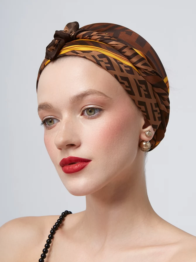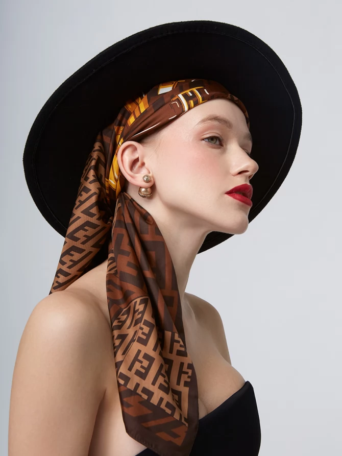 Благодаря своей деликатной текстуре и идеальной посадке, платок легко драпируется, позволяя создавать самые разнообразные стилизации: элегантно повяжите его на шею, придайте шарм вашей прическе, используйте как акцент на сумке или, как на нашем фото, создайте загадочный образ под широкополой шляпой. Каждый вариант будет смотреться безупречно, подчеркивая вашу индивидуальность и тонкий вкус.