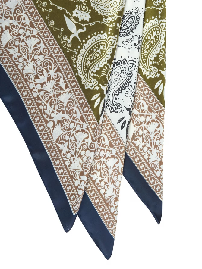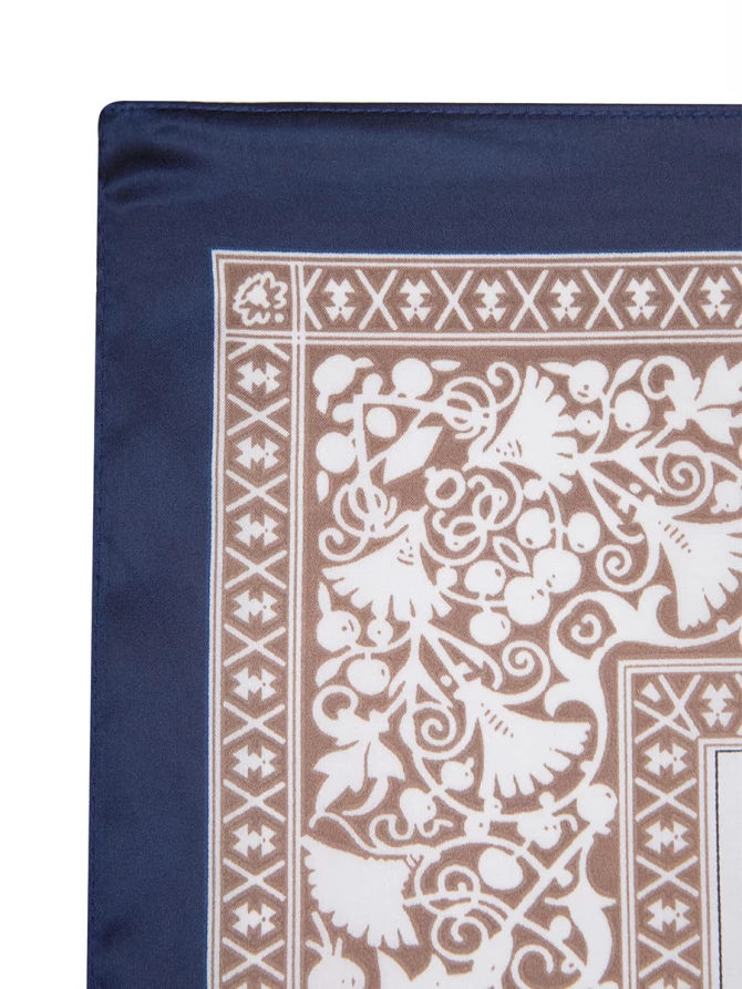 Его уникальный рисунок вдохновлен актуальными мировыми трендами, сочетая в себе изящные этнические и барочные мотивы в гармоничной палитре: теплые оттенки коричневого, глубокий синий, благородный оливковый и нежный молочный. Каждый элемент узора тщательно проработан, что подчеркивает его эксклюзивность и ваш безупречный вкус.