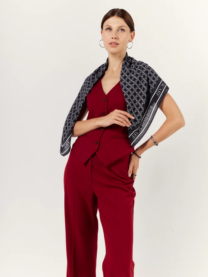 Этот платок выполнен из невероятно мягкой, тонкой и очень нежной ткани, которая дарит коже ощущение комфорта и лёгкости. Его уникальный двусторонний дизайн сразу привлекает взгляд: с одной стороны — выразительный геометрический принт, напоминающий изысканную сетку, с другой — стильная полоса с надписью «FASHION SCARF». Такое решение позволяет создавать множество разнообразных и модных образов, играя с текстурами и узорами.