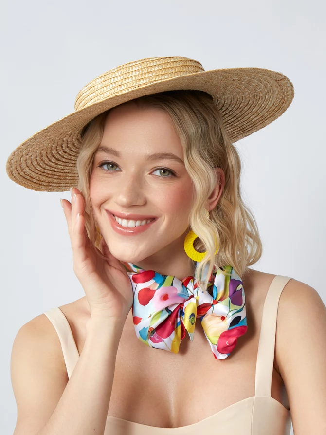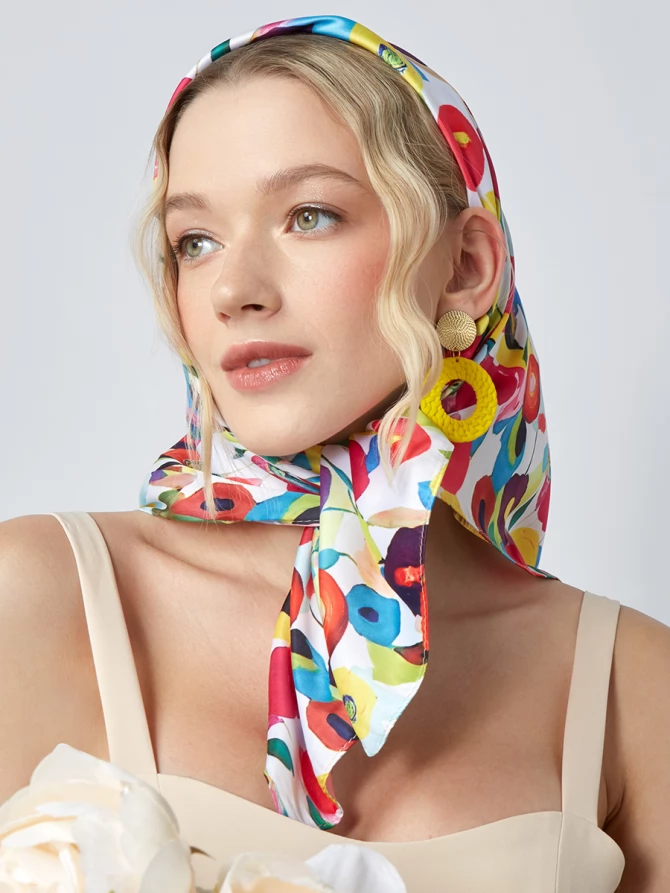 Каждое наше изделие разрабатывается и шьется с любовью, и этот платок не исключение. Мы гордимся тем, что предлагаем вам не просто аксессуар, а часть нашей философии – стремление к уникальному дизайну, безупречному качеству и идеальной посадке. Этот платок станет изюминкой вашего образа, добавив ему свежести и индивидуальности. Носите его как элегантный головной убор, стильный акцент на шее или даже как украшение для вашей сумочки. Он способен преобразить любой наряд, от повседневного до вечернего, наполнив его игривым настроением и утонченным шармом.